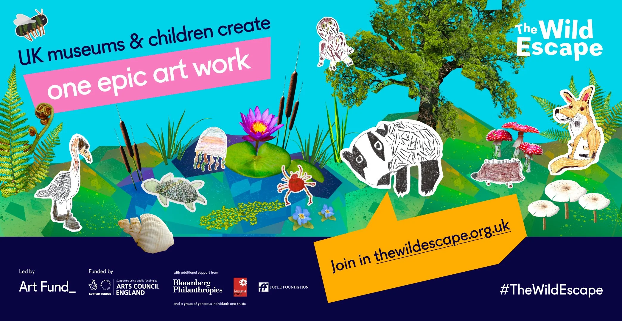 The Wild Escape was one of the UK’s largest ever museum-based participation projects – bringing together over 500 museums, near 100,000 children, and a network of artists, educators and activists to co-create a vibrant, hopeful vision for the future of our natural world.